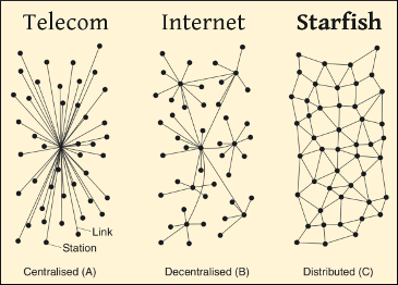 How he proposes to move on from this centralised form of communication is through Project Starfish, “a structure which is completely distributed. A completely distributive system where each node has several possibilities to reach any other nodes”.