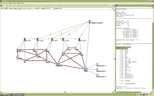 According to Valdis, “A node is basically defined as an entity that interacts with other entities. Nodes are usually persons but we can have groups or organizations.”